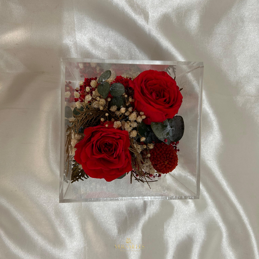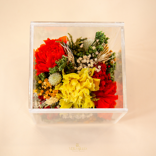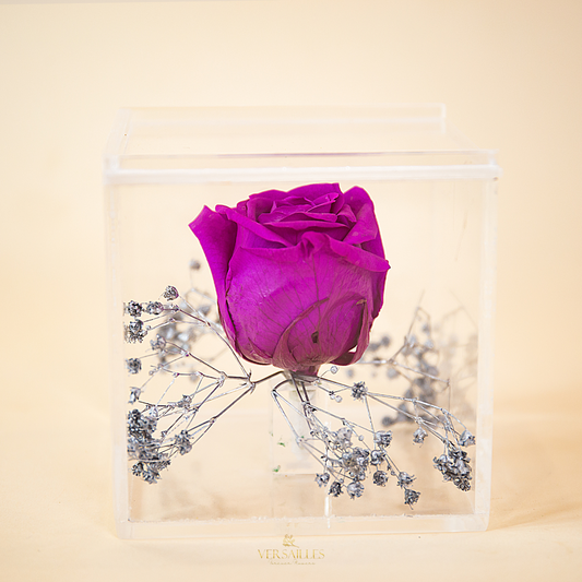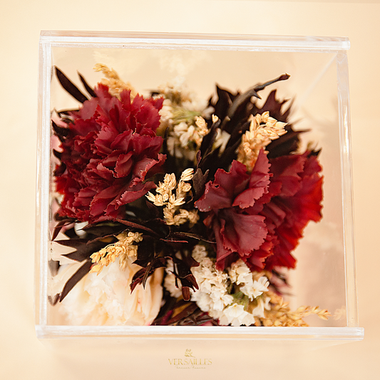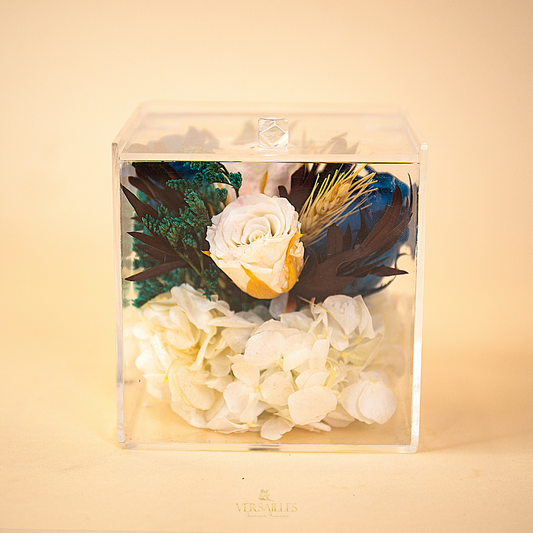Elevate your space with the stunning allure of Versailles Arrangements in Acrylic Boxes. These captivating displays unite modern aesthetics with the timeless beauty of preserved flowers. Each arrangement is carefully crafted to provide a touch of sophistication to any environment, making it a perfect centerpiece or gift.
